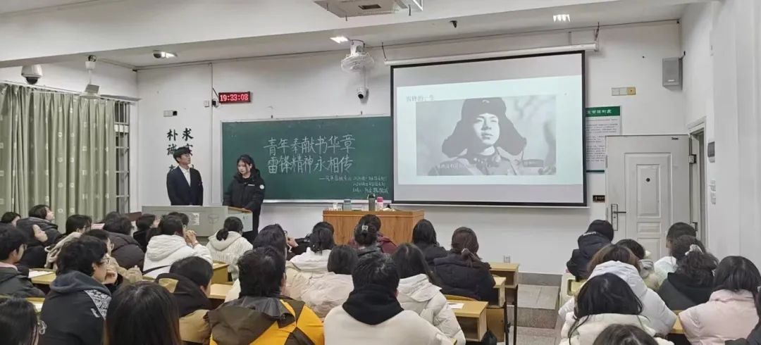 在青年政治理论大学习的课堂上,同学们踊跃发言,竞相阐述自己对雷锋精神的独到见解和落实行动。活动课堂气氛活跃,通过主持人细心地讲解及剖析,雷锋,这位不朽的精神楷模,在景艺院同学们的薪火相传中绽放永不磨灭的灿烂光辉。真正做到了知行合一,让奉献成为青春底色,让激情迸发青春活力。莘莘学子正以蓬勃的热情,将雷锋精神化为日常点滴,用行动证明:新时代的“活雷锋”就在身边,青春华章的书写永不停歇。