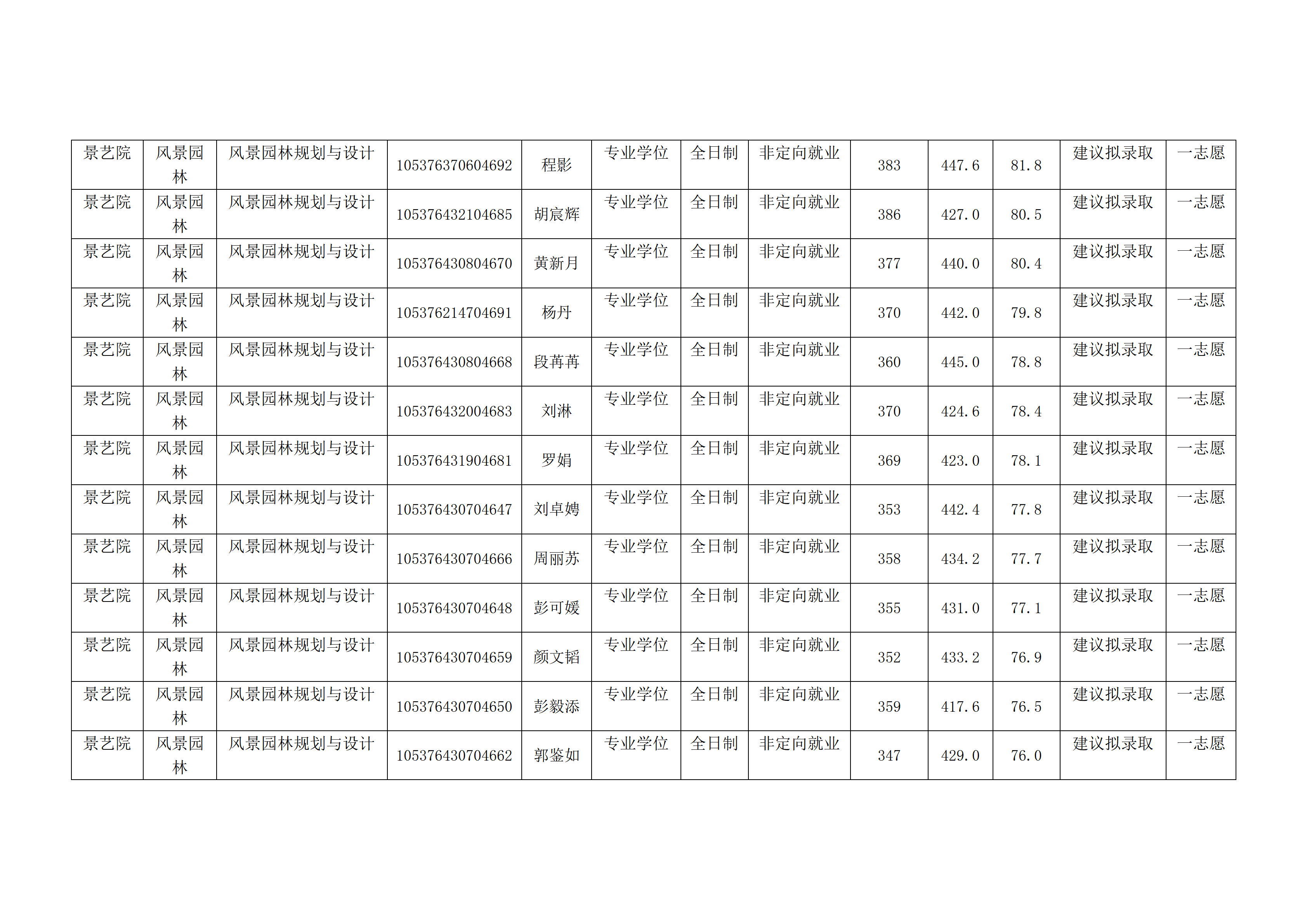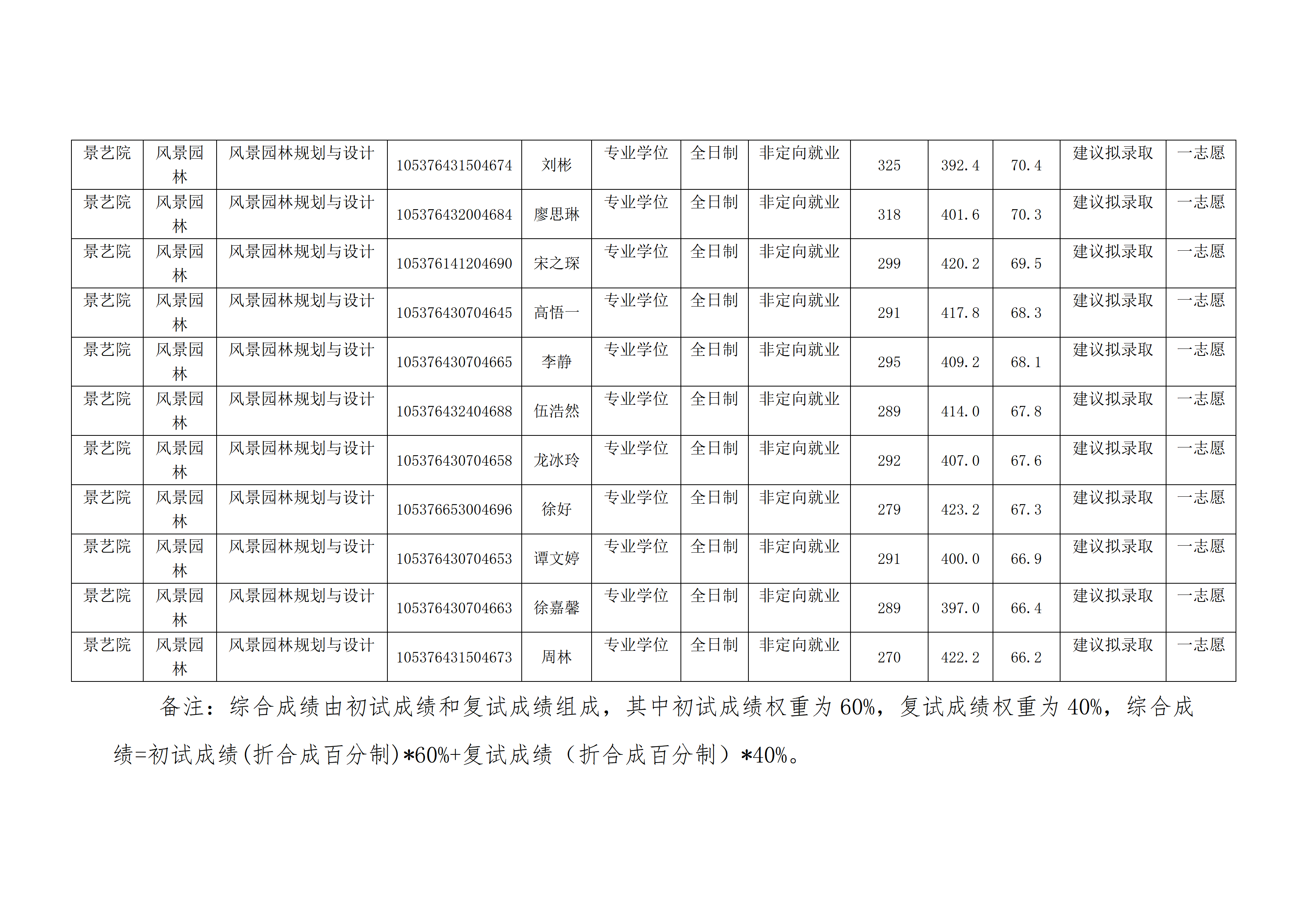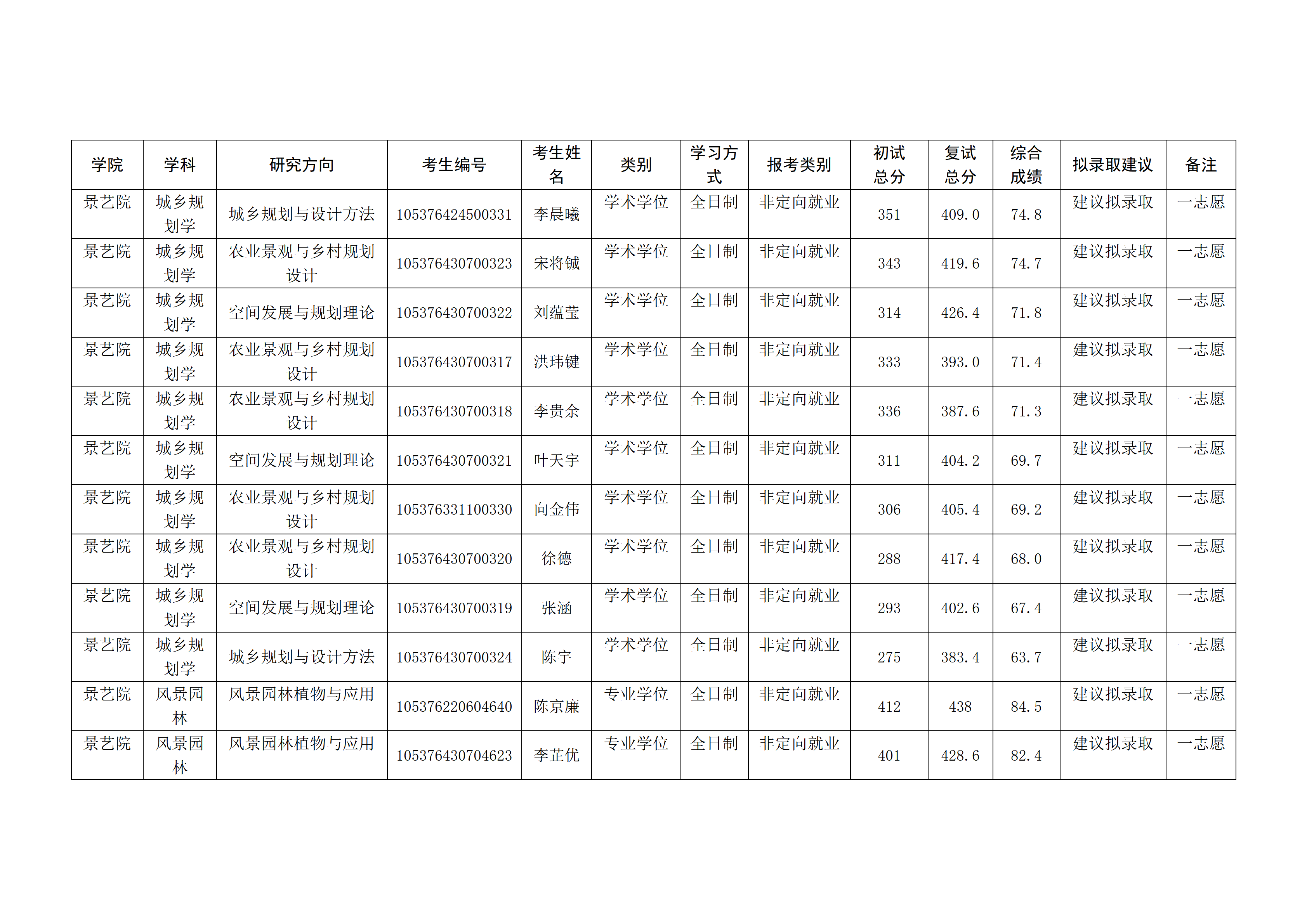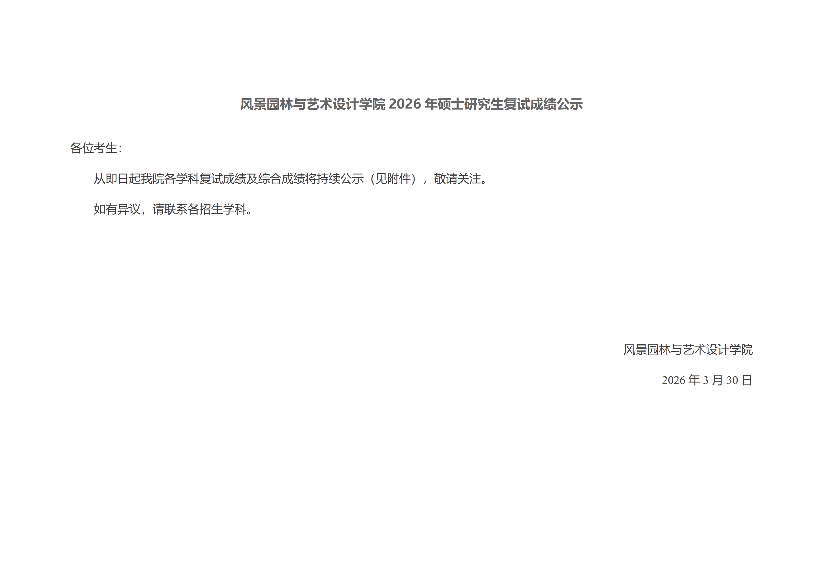 风景园林与艺术设计学院2026年硕士研究生复试成绩公示