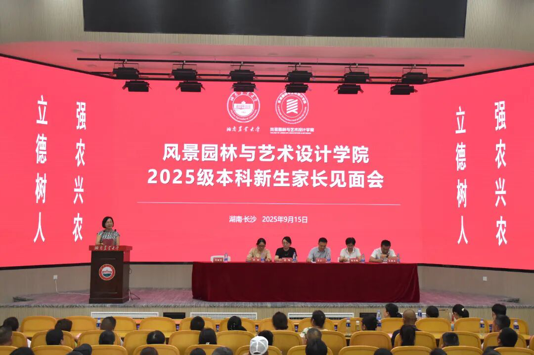 为搭建家校沟通桥梁,凝聚育人合力,助力新生尽快适应大学生活,9月15日下午,湖南农业大学风景园林与艺术设计学院在图书馆大成厅成功举办2025级本科新生家长见面会。学院全体院领导、各系主任、新生辅导员、全体新生班主任及助理班主任与2025级新生家长齐聚一堂,共商育人事宜,会议由学院副院长何丽波主持。