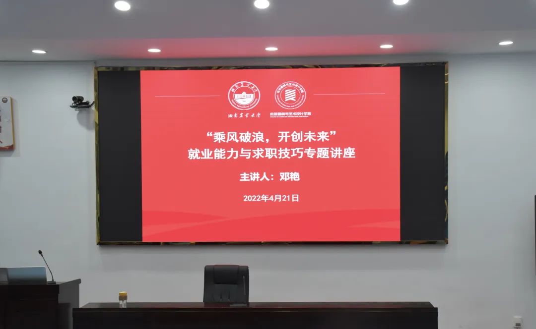 为了更好地推进就业工作,解决毕业生求职中的困扰,帮助毕业生提高就业能力,掌握求职技巧,实现高质量就业,同时引导低年级学生树立正确的就业观和择业观,强化就业帮扶平台建设,就业指导关口前移,4月21日晚,风景园林与艺术设计学院通过线上和线下结合的形式举办了以“乘风破浪,开创未来”为主题的就业能力与求职技巧专题讲座,讲座邀请到湖南农业大学大学生就业创业指导教研室主任邓艳老师主讲。线下会场设在老T6,学院党委副书记邓益成老师、学生工作办公室主任张冰清老师、2022届毕业本科生和研究生代表参加了线下讲座,讲座通过抖音平台同步直播。
