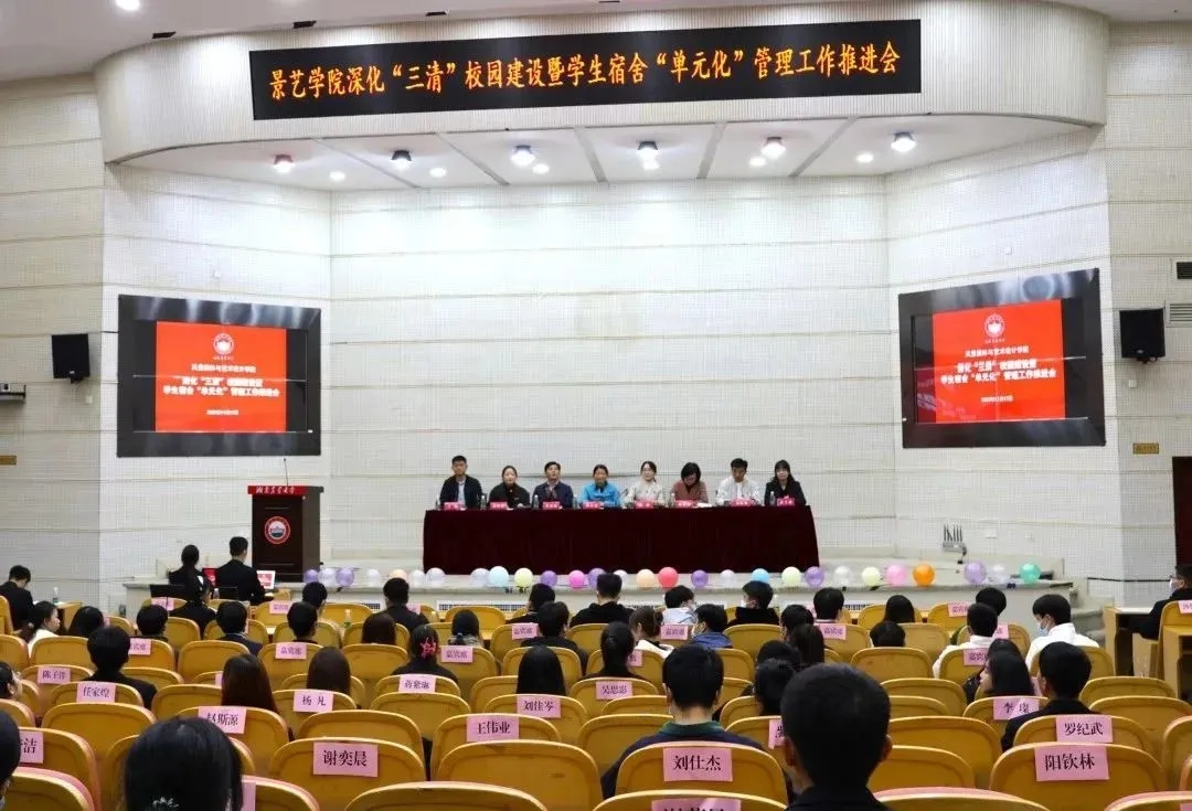为深化“三清”校园建设,落实学院学生宿舍“单元化”管理工作,2022年11月17日晚,学院在图书馆大成厅召开深化“三清”校园建设暨学生宿舍“单元化”管理工作推进会。学院党委书记徐小雀、正处级组织员洪彬、党委副书记兼副院长邓益成、学生工作办公室主任张冰清、院团委书记邓深林、学工办老师王伟、张雪莉出席,学院团学干部、楼层长、各学生党支部支委、各班班委参加会议。大会由学院学生工作办公室主任张冰清主持。