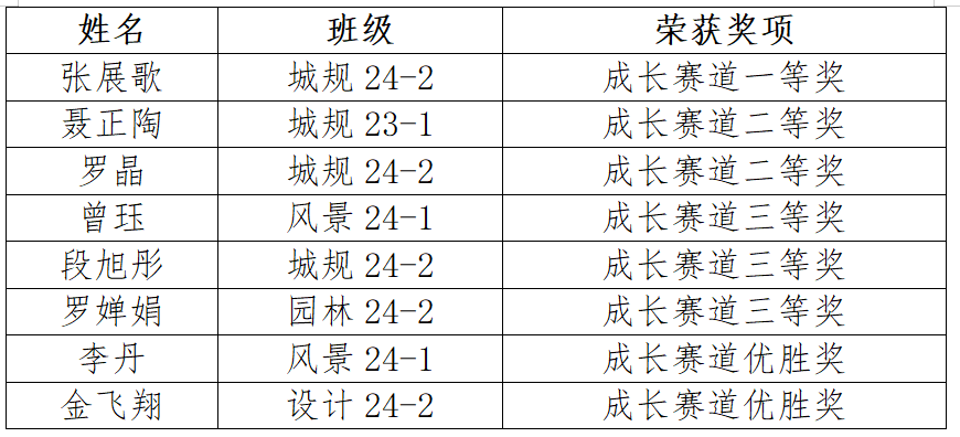 湖南农业大学风景园林艺术设计学院第二届大学生职业生涯规划大赛成长赛道获奖情况