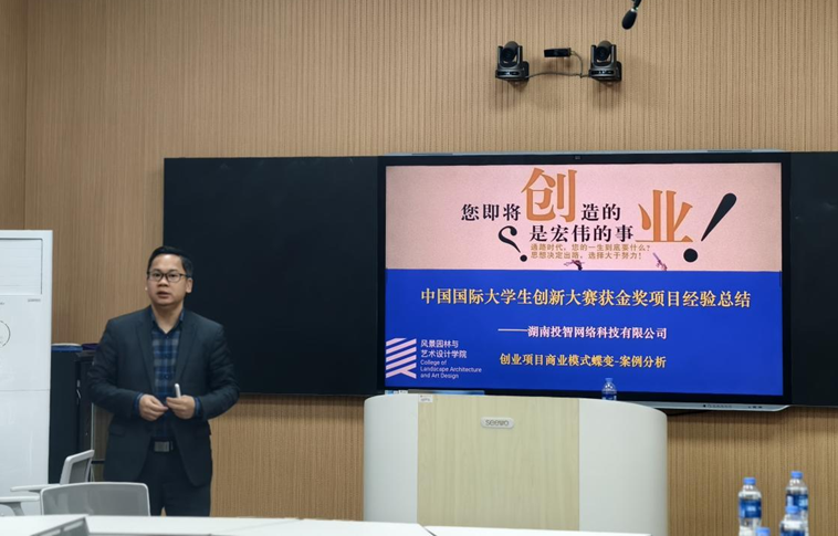 为助力大学生提升创新创业能力,深化对赛事规则与商业模式的认知,湖南农业大学风景园林与艺术设计学院于11月13日上午9:30在第五教学楼215室举办“大学生创新创业大赛获金奖经验总结——创业项目商业模式蝶变”专题讲座。本次讲座特邀资深企业管理咨询专家、创业项目引导师尹青军担任主讲人,面向全院师生分享实战经验与策略。