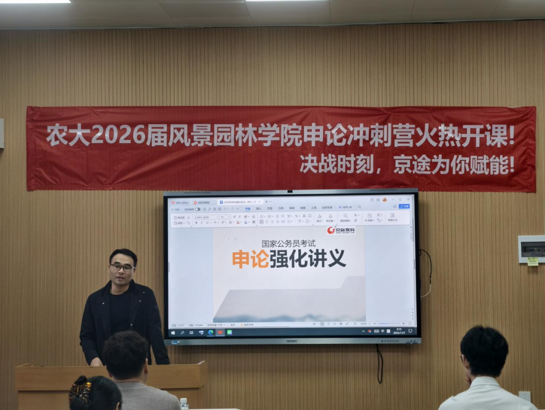 为切实提升我院学生公务员考试竞争力,促进学生综合素质全面发展,11月7日,风景园林与艺术设计学院于第五教学楼220教室正式启动2026届考公申论写作冲刺营并举行开班仪式。学院党委副书记兼副院长周笑妮、湖南省知名公考机构京途教育申论培训讲师代表参加仪式,仪式由周笑妮主持。