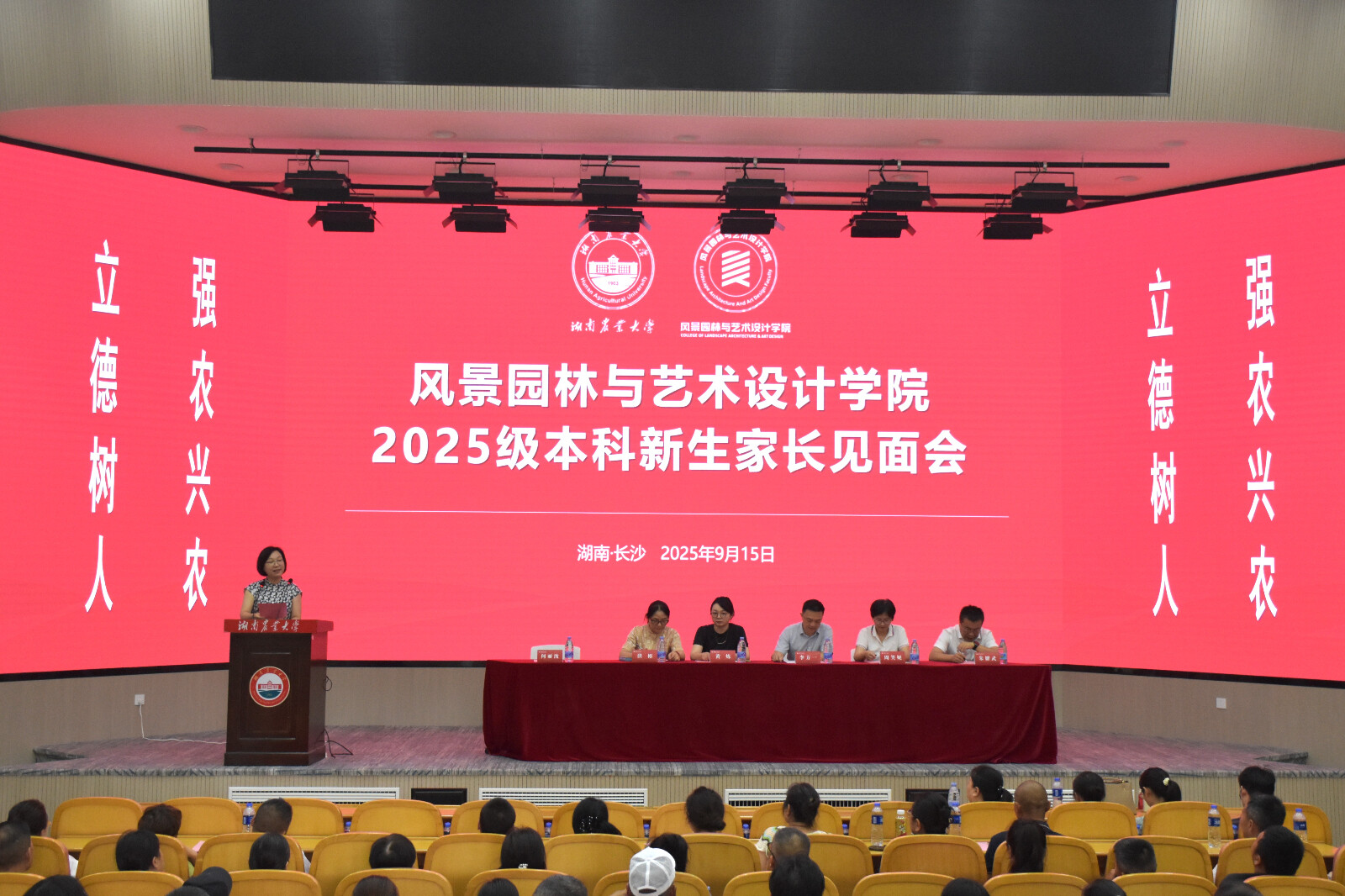 9月15日下午,湖南农业大学风景园林与艺术设计学院在图书馆大成厅成功举办2025级本科新生家长见面会。学院全体院领导、各系主任、新生辅导员、全体新生班主任及助理班主任与2025级新生家长齐聚一堂,共商育人事宜。
