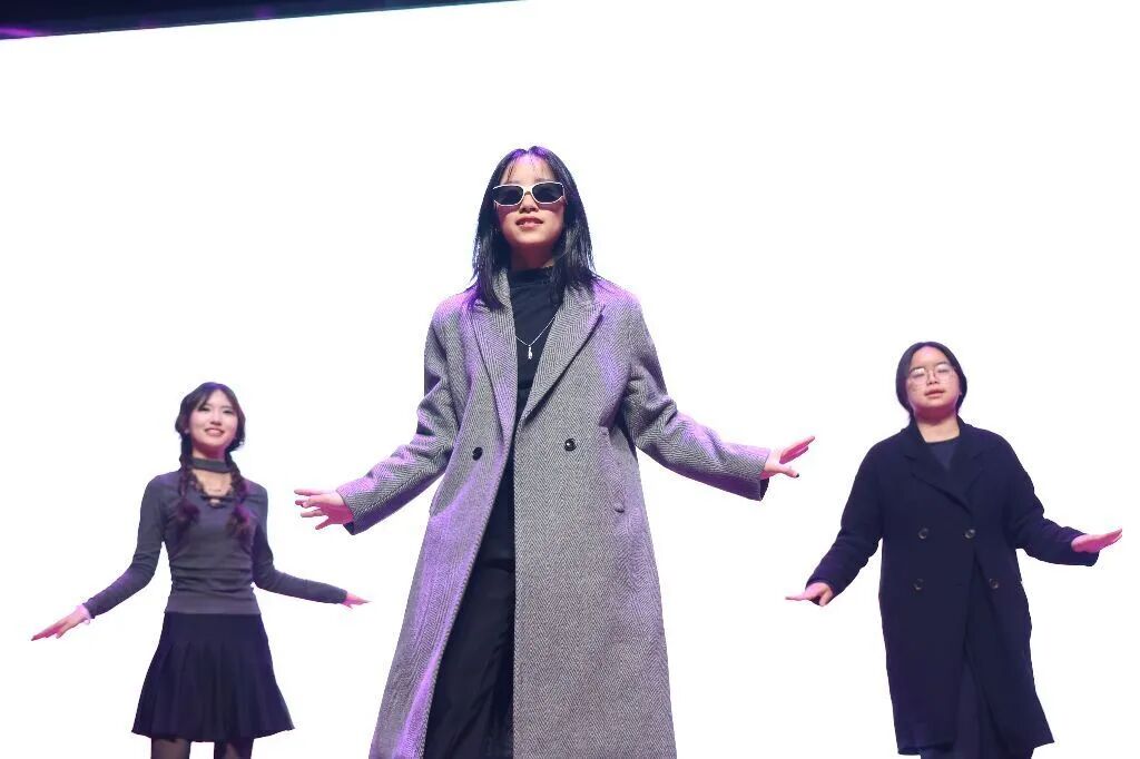 礼仪队的走秀《黑白映画,焕新启航》则为观众带来别样的视觉体验,队员们以优雅的仪态、创意的造型搭配,将黑白经典色系与园林艺术、设计美学相融合,步履之间尽显学院学子的审美素养与气质风采。