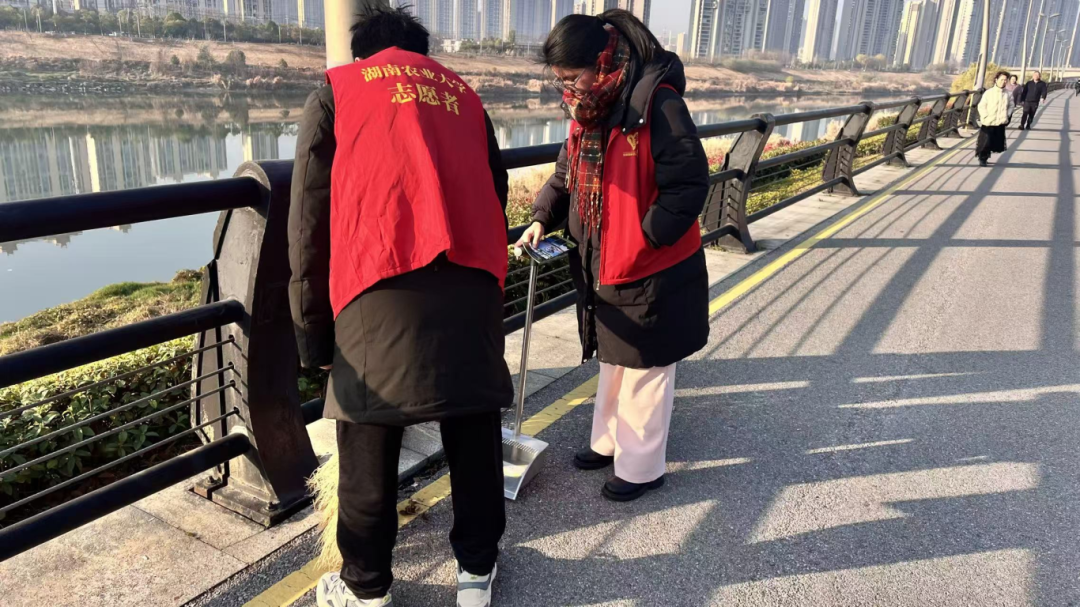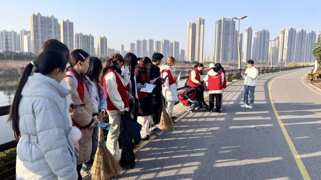 1月10日上午风景园林与艺术设计学院12名志愿者前往浏阳河畔开展“浏阳河净滩”志愿活动,此次活动以“守护浏阳河,共建美丽家园”为核心,旨在通过实地清理河滩垃圾、广泛宣传环保理念,进一步增强同学们的生态文明意识与社会责任感,凝聚起保护浏阳河生态环境的青春力量,让母亲河始终保持清澈秀丽的风貌。