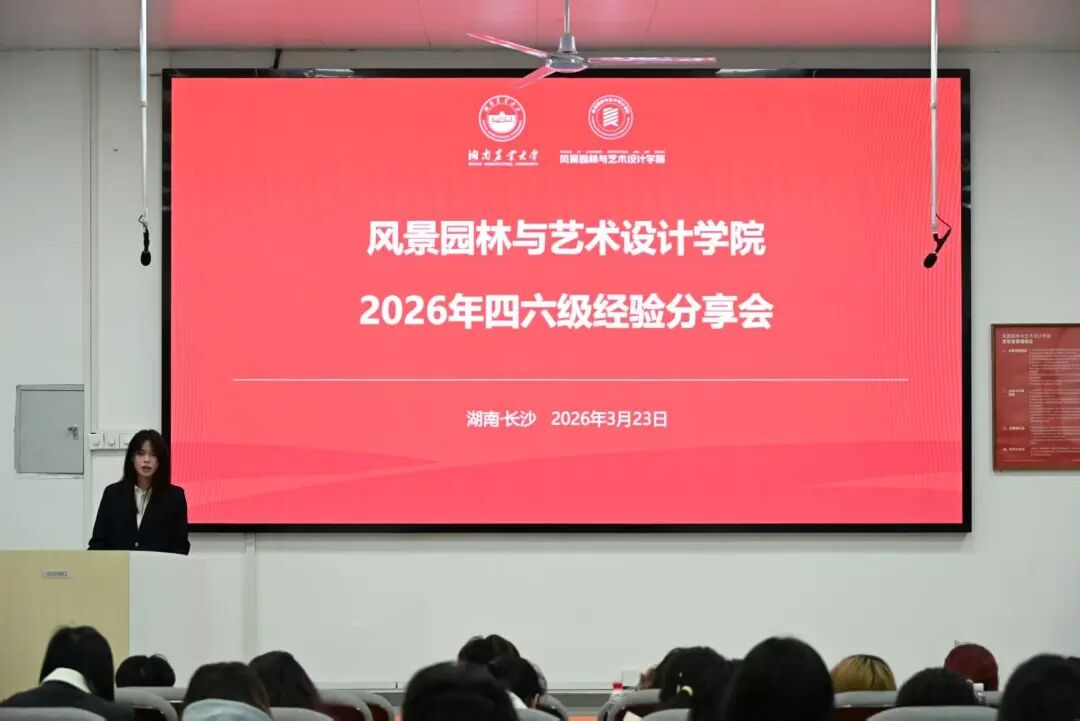 为切实帮助同学们高效备考大学英语四六级考试,掌握科学复习方法与应试技巧,2026年3月23日,由湖南农业大学风景园林与艺术设计学院主办的四六级经验分享交流会在四教T2顺利举行。23-25级备考四六级的同学齐聚一堂,共同交流学习经验,现场氛围热烈浓厚。