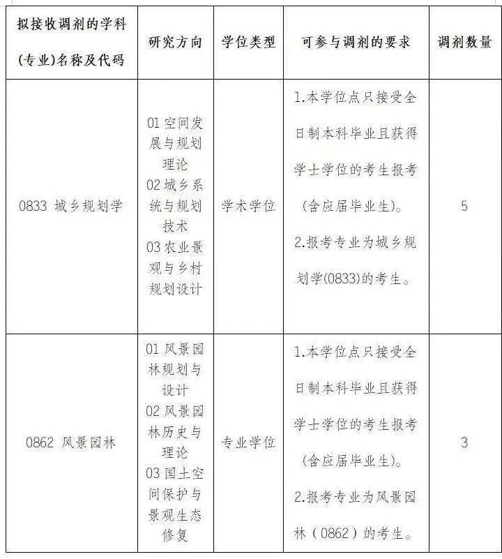 我院城乡规划学(学科代码0833,学硕)和风景园林(学科代码0862,专硕)目前有招生名额可供调剂,有调剂意愿的考生须通过中国研究生招生信息网的“全国硕士生招生调剂服务系统”进行。请各位考生留意以下重要事项: