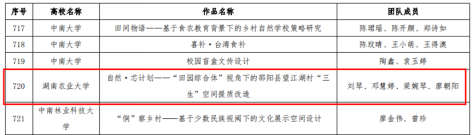 11月26日,首届中国研究生“美丽中国”创新设计大赛于杭州建德圆满落幕。我院硕士研究生刘琴、邓慧婷、梁婉琴、廖朝阳的作品 “自然·芯计划——‘田园综合体’视角下的邵阳县望江湖村‘三生’空间提质改造”荣获优胜奖,该作品由谭洁老师指导完成。“该作品以“和美乡村”建设作为设计切入点,在遵循生态可持续原则与充分尊重场地原地理特征的前提下,针对场地内现有的生态环境恶化与传统特色文化濒危等现状问题,将生态修复与智能应用相链接,通过生态系统恢复、蓝布印染传统街区与智慧生态农业等设计打造具有当地特色的文旅体验空间、智慧生态产业、和美人居环境,旨在促进新型产业与农村发展的有机结合,引导城乡共建、产业变革,赋能文旅新品牌,注入乡村振兴新动力。