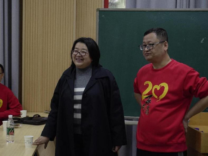 在分享会上,几位曾经的任课老师纷纷送上祝福。班主任向智莉老师深情寄语:“很高兴时隔十年又一次相聚,这段大学时光我们一起成长,希望再过十年我们还能再相聚,祝大家新的一年顺顺利利,事业更上一层楼。”