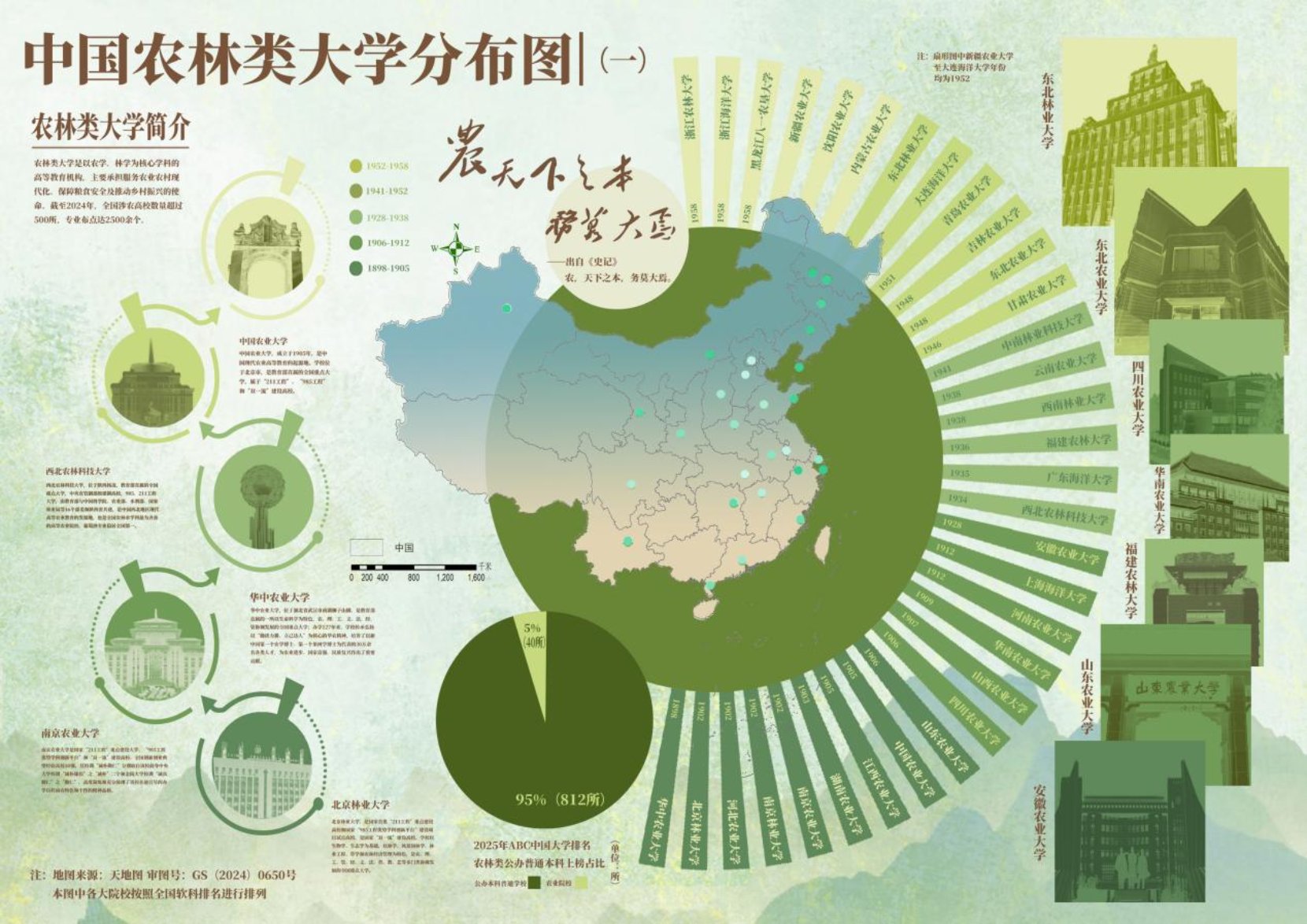 这件以“中国农业教育”为主题的地图作品,不仅是一次专业学习的综合实践,也旨在通过地图语言向社会公众普及农业教育资源,传递农业教育价值,为我国农业教育发展贡献一份独特的力量。