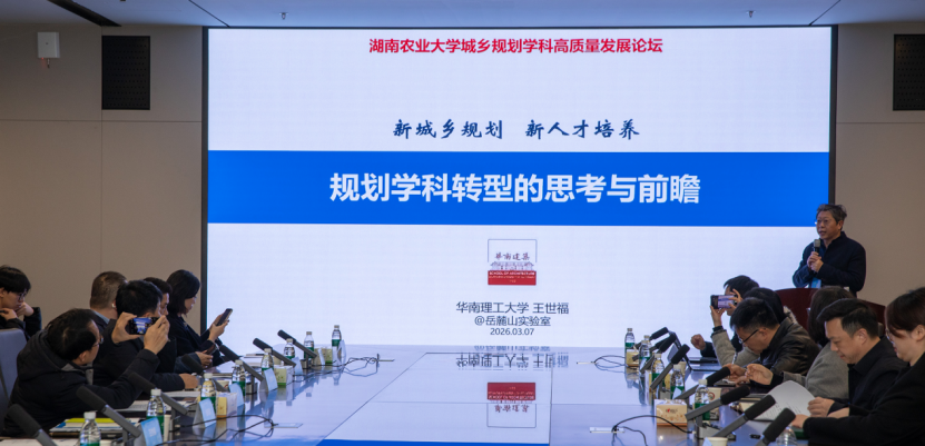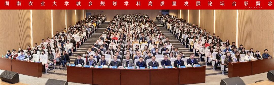 在国务院学位委员会城乡规划学科评议组、教育部高等学校城乡规划专业教学指导分委会的指导下,3月7日,湖南农业大学城乡规划学科高质量发展论坛在岳麓山实验室举行。论坛由我院和学校发展规划与学科建设处、研究生院共同承办,以“新城乡规划 新人才培养”为主题,特邀中国工程院院士吴志强、邹学校及国内城乡规划领域的多位权威专家学者齐聚一堂,聚焦城乡融合共荣与教学系统创新,共同探讨城乡规划学科建设与人才培养新路径。